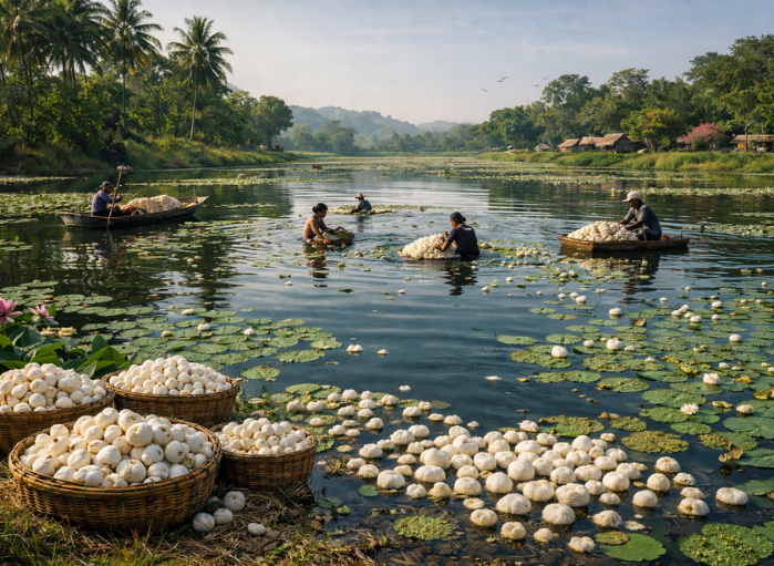Our makhana journey begins in the natural ponds where lotus seeds are carefully harvested. Working closely with farmers allows us to maintain authenticity, quality, and traceability from cultivation to processing.